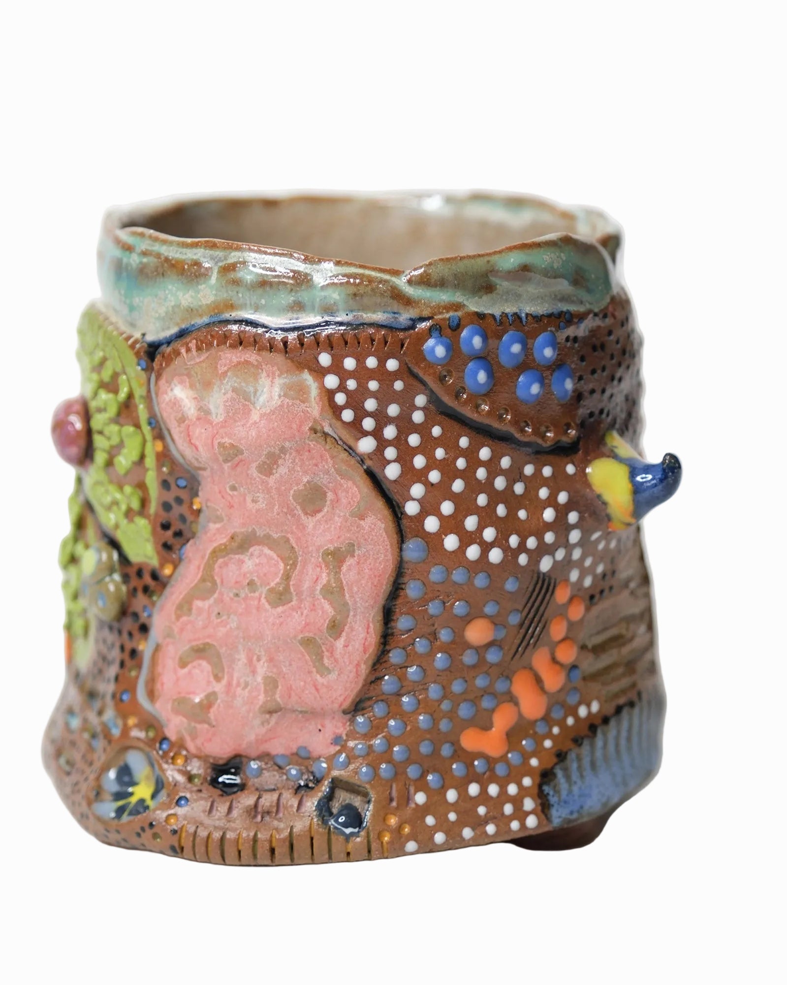 Part of the statement mug collection in a vibrant color palette. Each mug is hand built and glazed individually allowing for each one to be unique.